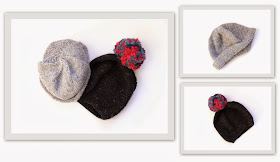 Here are the finished hats. The grey one has now become mine , I love it fits tight on my head with the rim of the hat turned over once or twice. It really shows off the different stitching.