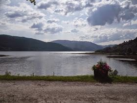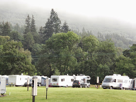 The west end of the village is magnificently sited around the scenic Falls of Dochart, the main street leading down towards the Loch at the confluence of the rivers Dochart and Lochay. At the top of the main street is the camp site we stayed in on our latest trip. I couldn't resist taking this photo one morning, the scotch mist over the camp site.