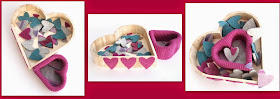 I took a little time off yesterday, away from my lap top and away from those knitting needles. I decided to have a play with some wooden heart boxes I had acquired and an idea I had to cover them with recycled felt.