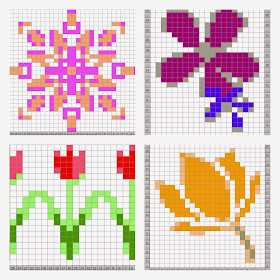Well these are my first attempts of taking some flowery clip art photographs and turning them in to Fair Isle charts for you.