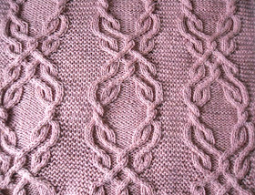 Row 29: (K6, k2, c4f, p12, c4b, k2) 3 times, k6